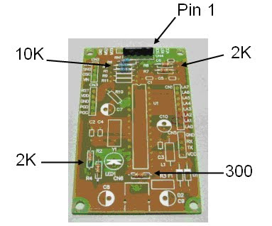 1.Assemble resistance R1, R5, R6 (the 10K ohm), R3 (the 300 ohms), R2, R4, R7,R8 (the 2K ohm) and RN1 (the 4.7K ohm, attention installs Pin 1).